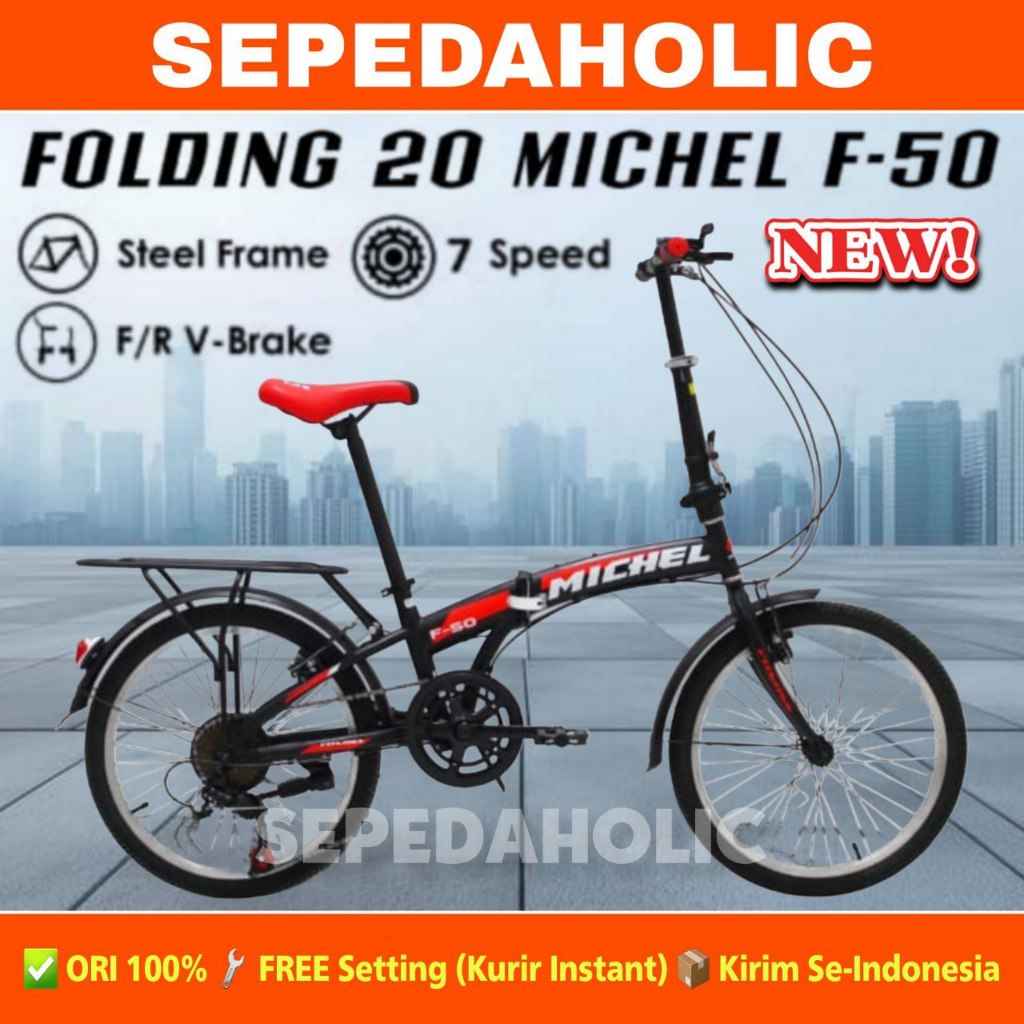 TERLARIS Sepeda Lipat VELION DB74 / MICHEL F50 F 50 Ukuran 16 18 20 Inch Rem Cakram sepeda lipat dewasa