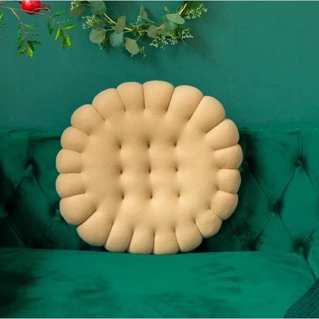Bantal Duduk Biskuit Bulat / Bantal Sofa / Alas Duduk Bentuk Biskuit / Biscuit Pillow Bahan plush