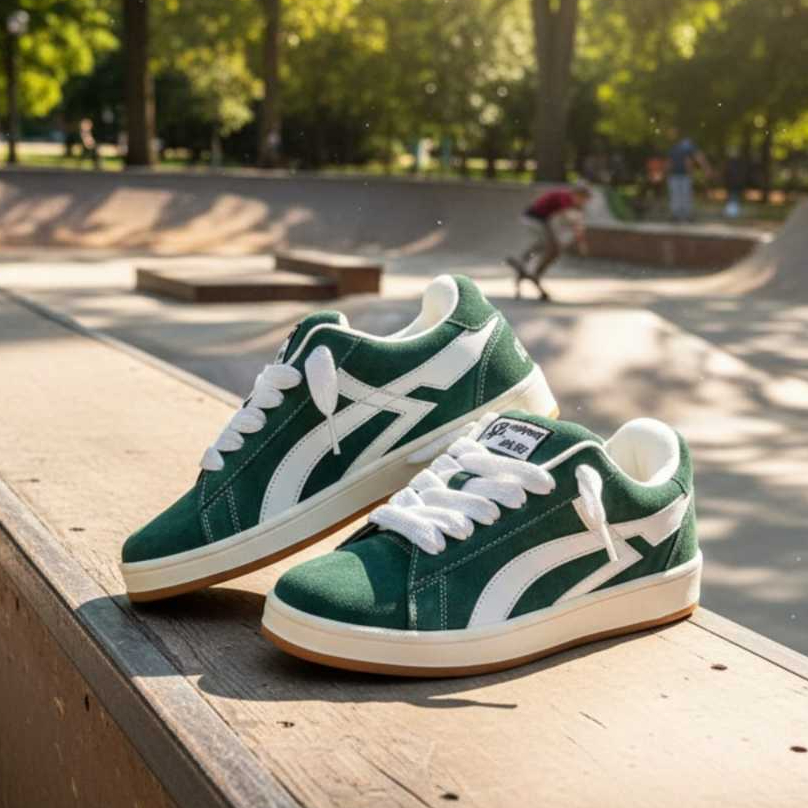 sepatu skate sneaker sle decit berdecit pria dan wanita warna hijau bahan SUEDE on aktif warna hijau green Outfit sekena