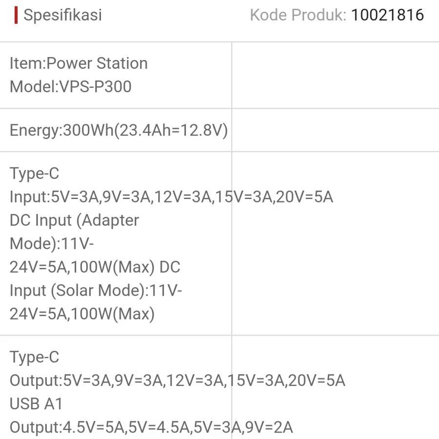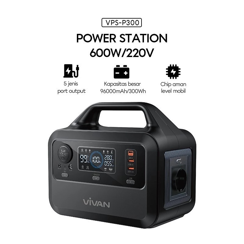 Vivan Power Bank Power Station Vps-P300 Powerbank 96.000Mah Storage Power Supplay Daya Listrik 220V/300W 5 Output Garans