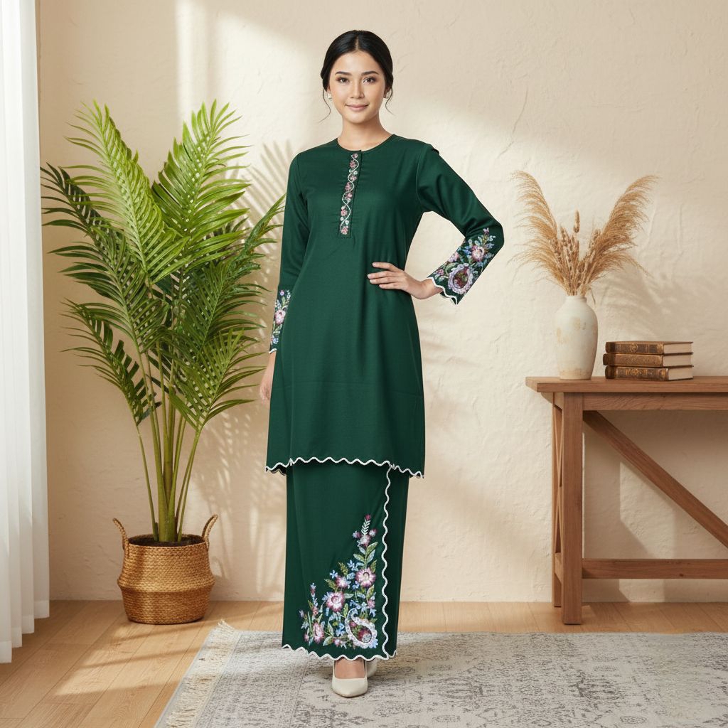 Set Rok Melayu Rayana Terbaru Stelan Rok Bordir Premium Baju Kurung Melayu Katun Toyobo Premium