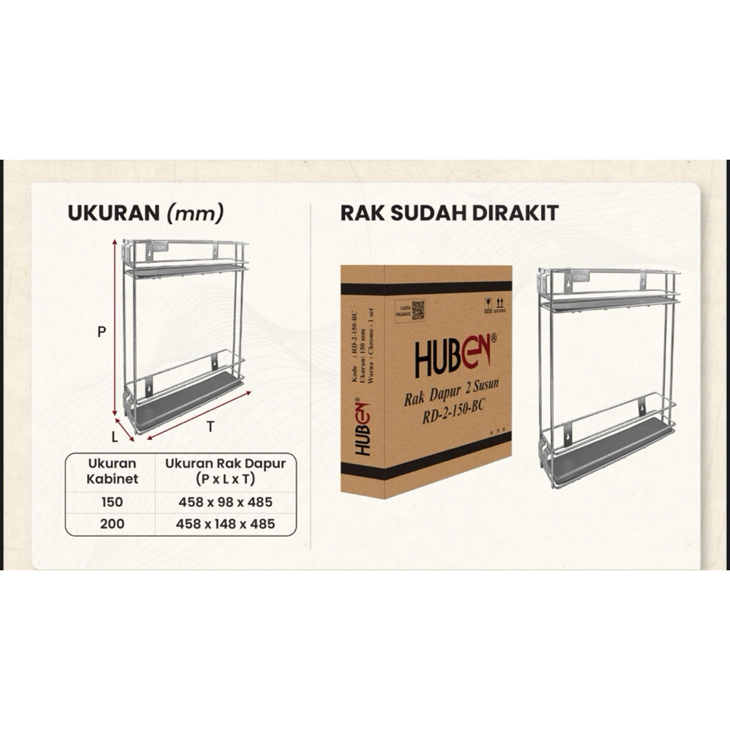 RAK botol tarik rel samping 2 susun bumbu gelas dapur kitchen lebar 15 atau 20cm HUBEN