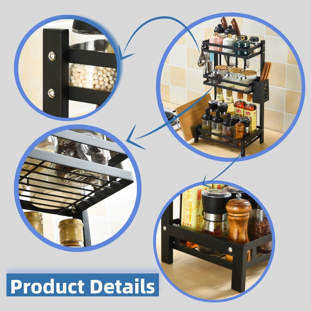 HOMIX Rak Bumbu Dapur Penyimpanan Bumbu Penyelenggara Rak Susun Stainless Steel 2/3 Tier Rak Botol Rempah-rempah