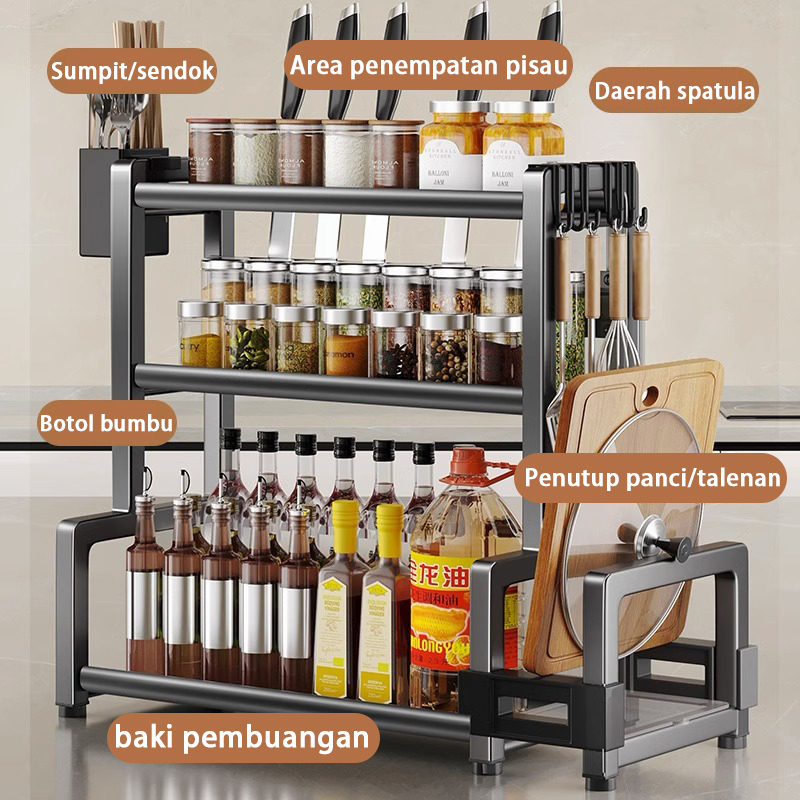 Rak Bumbu Dapur/ Rak Bumbu Serbaguna Dapur/ Rak Bumbu Stainless Steel/ rak Penyimpanan Bumbu 2/3 lapis