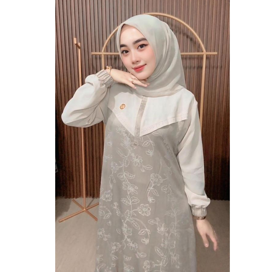 Gamis Lebaran Model Terbaru Bahan Rayon Jaguard Mix Sabrina Adem Jatuh Lembut Busui Dress Muslim Cantik Motif Kekinian