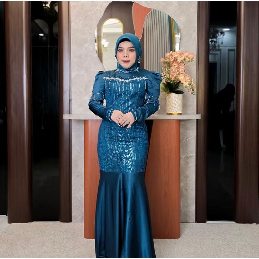 ARSHILLA DRESS LEBARAN TEAL EMERALD BLUE 2026 SATIN VELVET BRUKAT PREMIUM WANITA KONDANGAN MUSLIM GAMIS BODY FIT VIRAL MERMAID