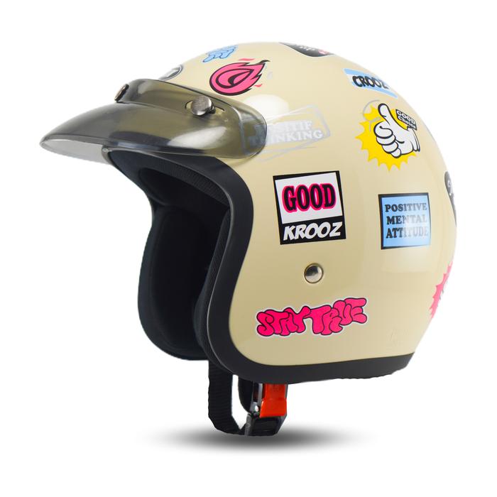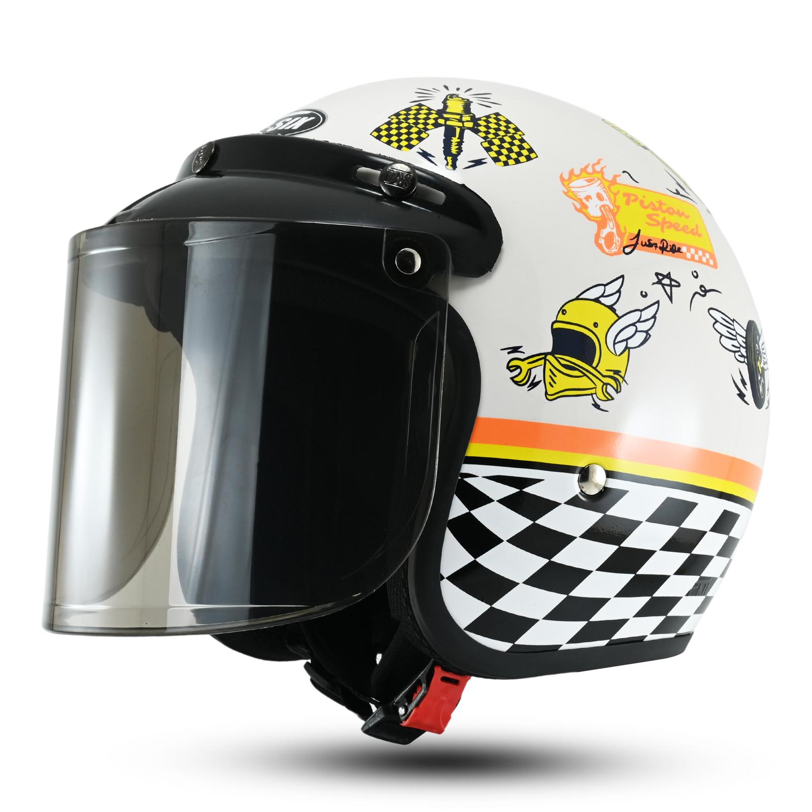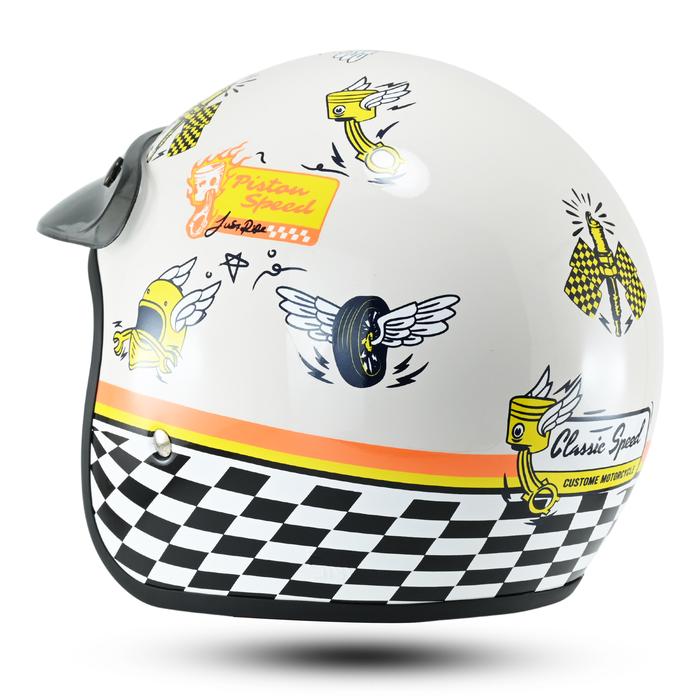 Helm Rsix Retro Bogo Pria Wanita SNI Terbaru Motif Piston Speed Custom Motorcycle Kaca Datar Cembung Helmet cargloss hi