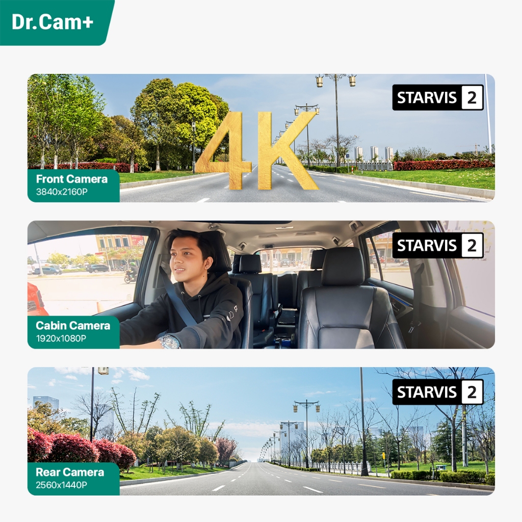 DrCam+ Dashcam Apex 3 SONY STARVIS Chipset Premium Quality Smart 3 Cameras Dashcam with ADAS WiFI GPS