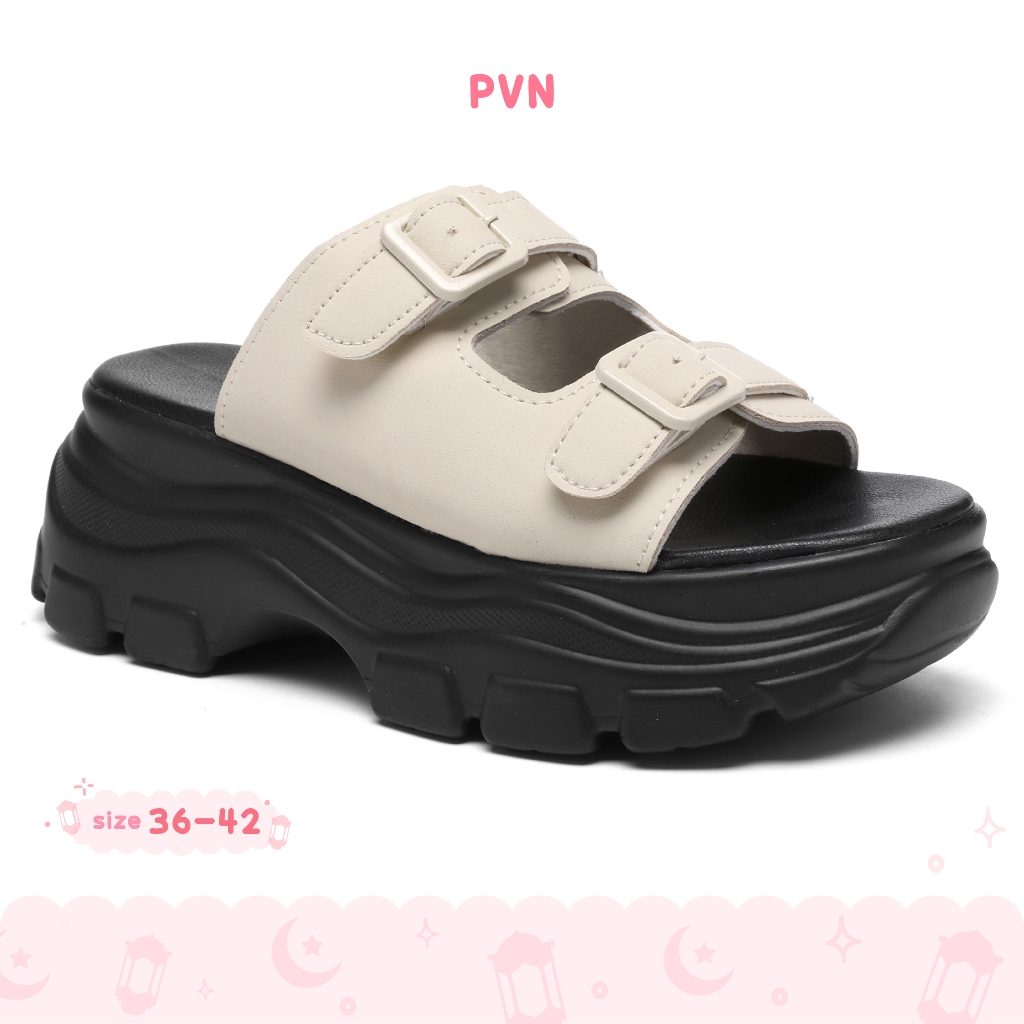 PVN Aran Sandal Tali Wanita Hitam Krem 217