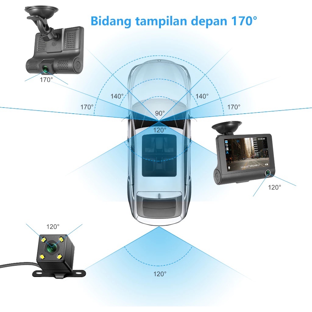 PHILIPS 4 inch 3 Lens Dashcam Mobil Gaya 1080P+1080p 3 Lens HD 170° Sudut Pandang Loop Recording Kamera depan dan belakang Dapat merekam situasi di dalam mobil