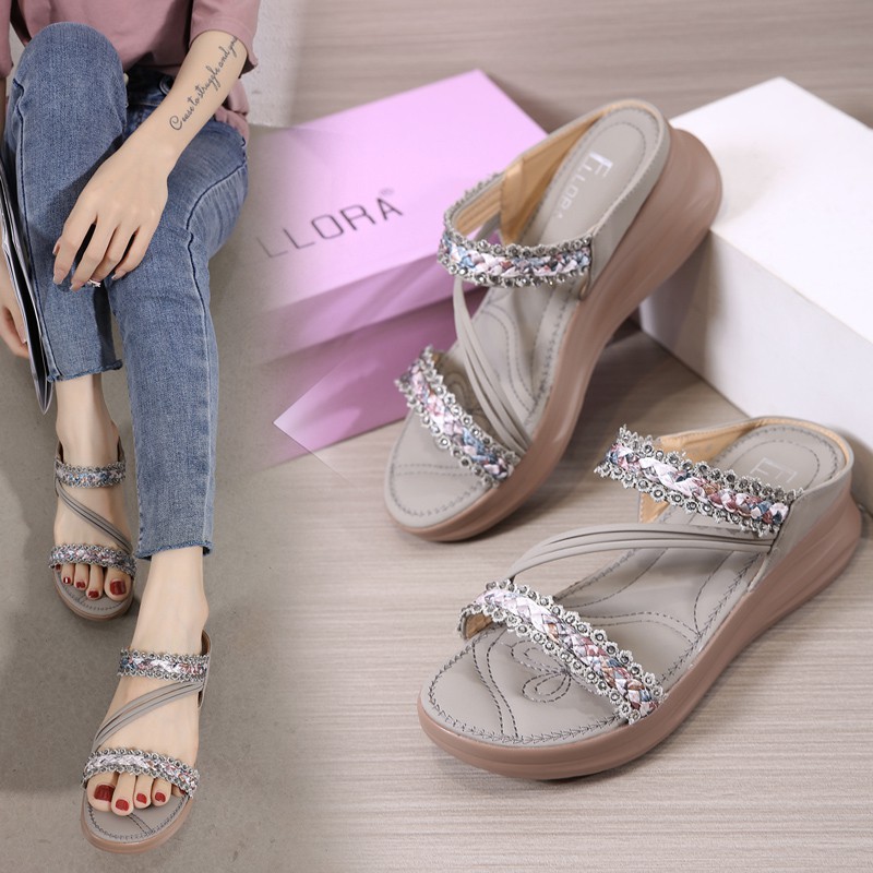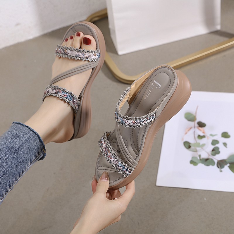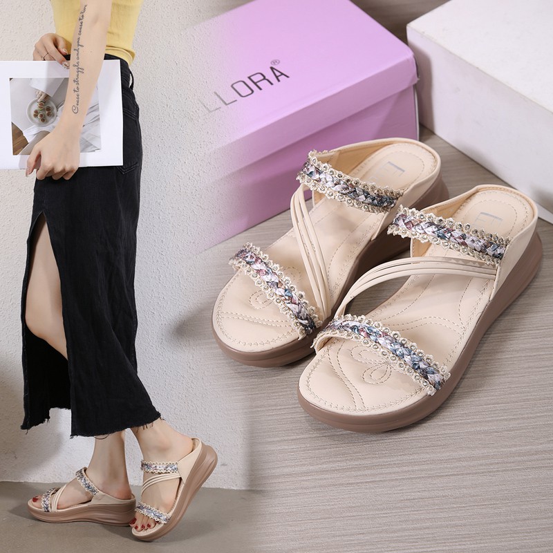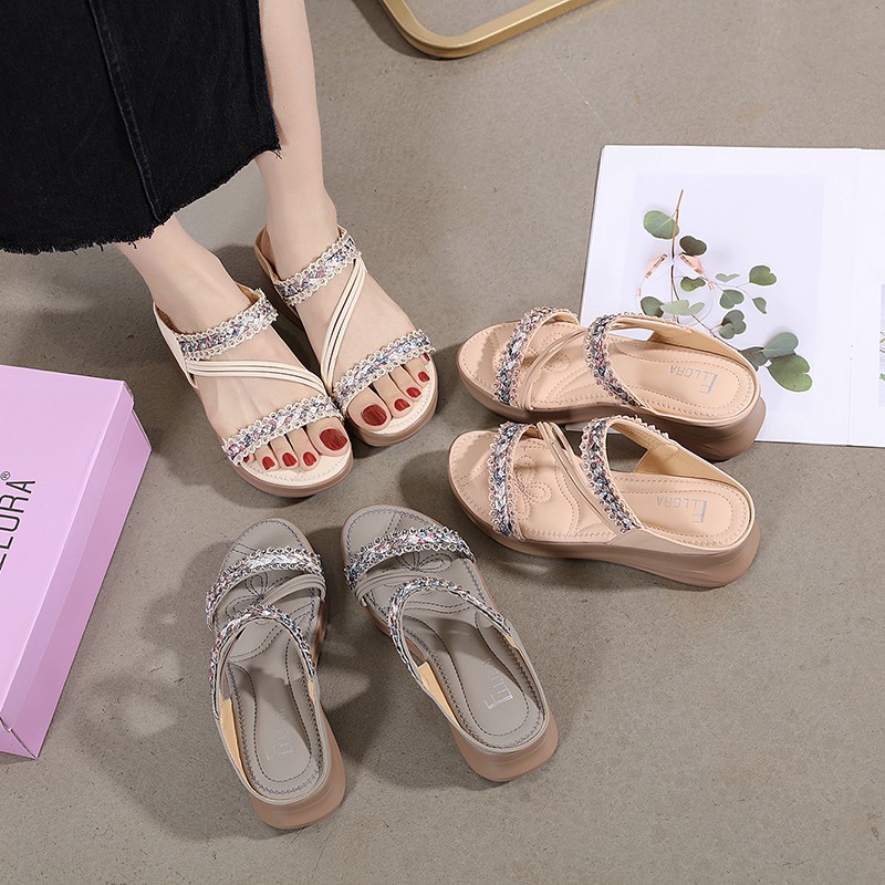 ELLORA EB330-04 Sandal Wedges Wanita Import Tanpa Tali 5cm