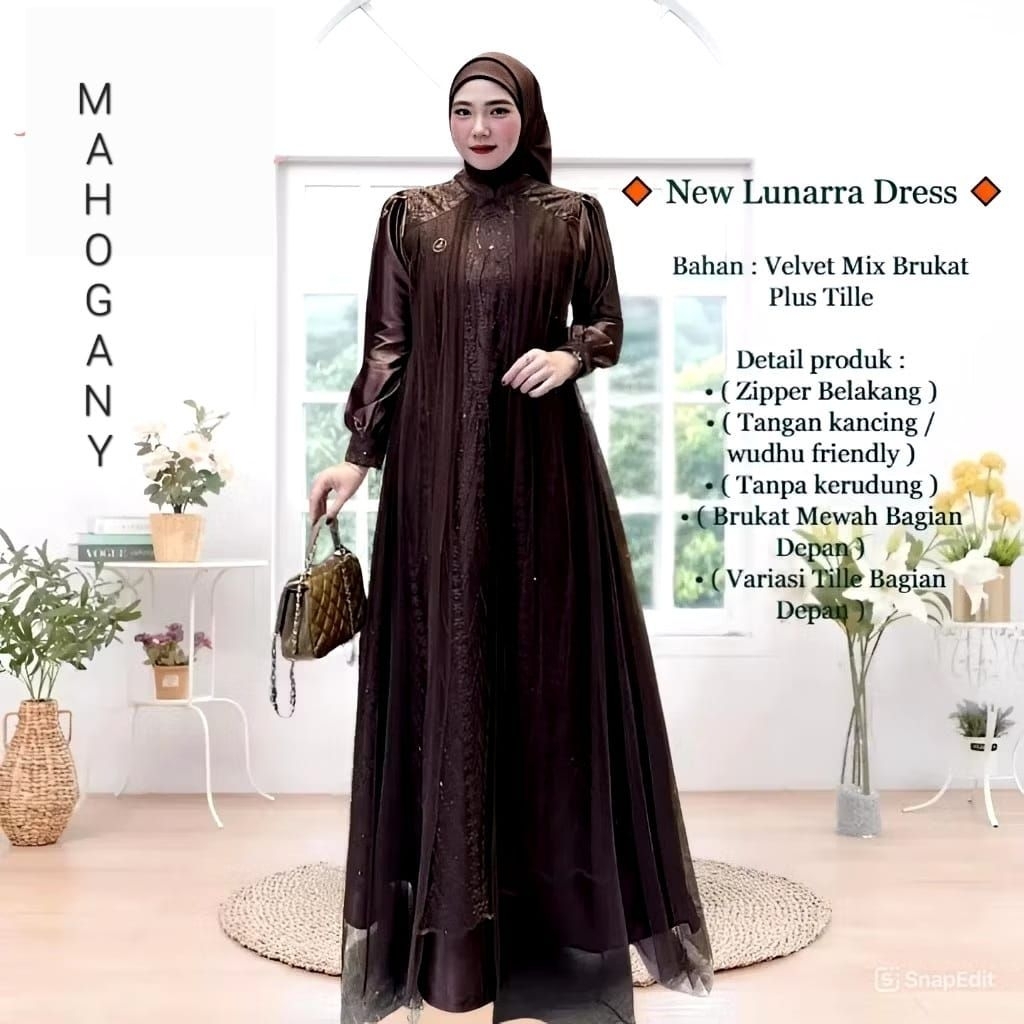 LUNARRA LACE TERBARU BAJU GAMIS LEBARAN 2026 LEYA DRESS WANITA VELVET MIX BORKAT TILLE MEWAH ELEGAN