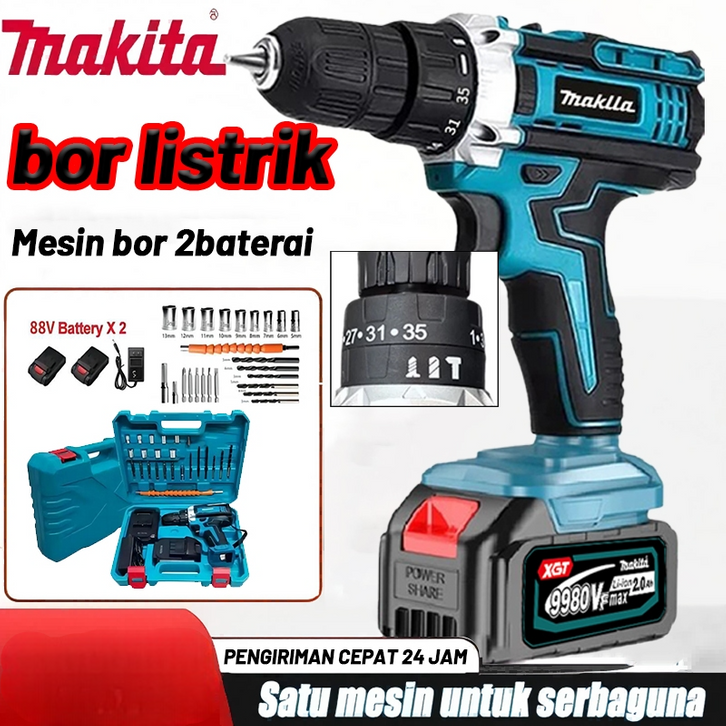 Mesin Bor Makita 9980vf 2baterai Cas 10mm Baterai Impact Listrik 1 Set Lengkap Tangan Baterai Besi Tembok Bor Bosch