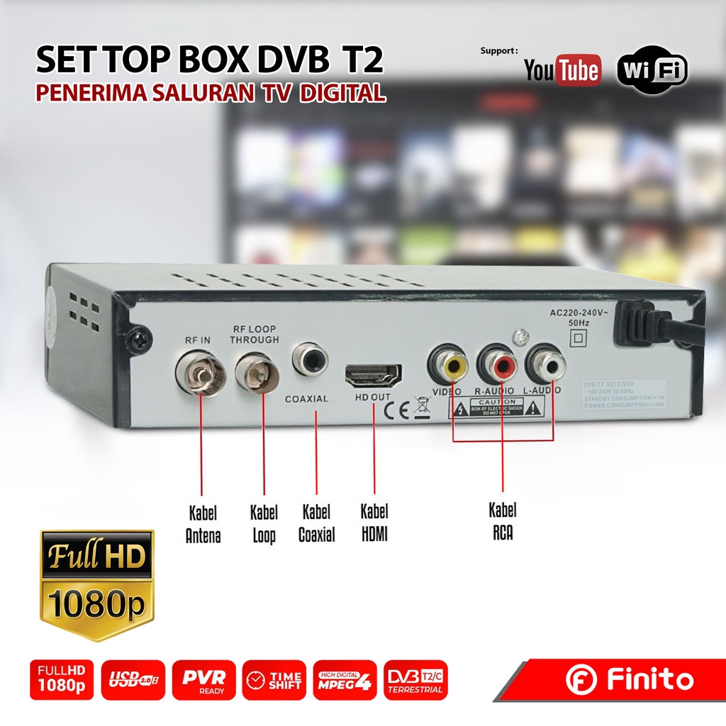 FINITO Set Top Box Digital Plat Besi Anti Panas Bisa Youtube Kominfo Dan SNI, Gambar FULL HD