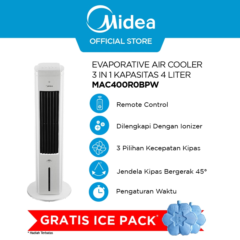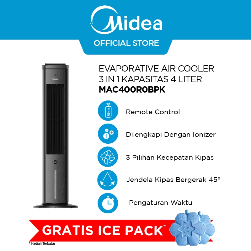 [GRATIS ICE PACK] Midea 3-in-1 Evaporative Air Cooler - MAC400R0BPW (4L) - Remote and Ionizer Technology Gen 2