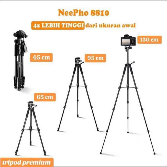 Tripod Premium Peyangga Handphone Camera Dengan Tinggi 1,3 Meter Free Holder Baut + Remot Bluetooth Tripod Neppo 8810