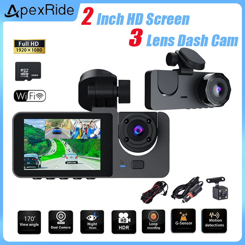 APEXRIDE Kamera Dash Cam Untuk Kendaraan WIFI Video Recorder 2Inch 3 Lensa Rekam Kamera Mobil Depan Dan Belakang 1080P Night Vision DVR