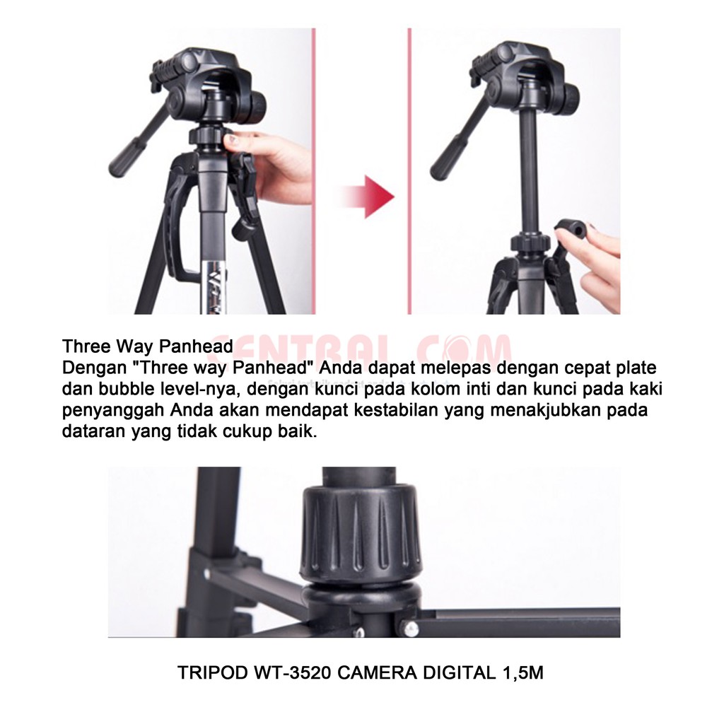 Tripod Hp kamera WT 3520 Free Holder dan Tas / Universal Penyangga Handphone Camera Digital Portable Bisa Landscape tinggi 1.5m