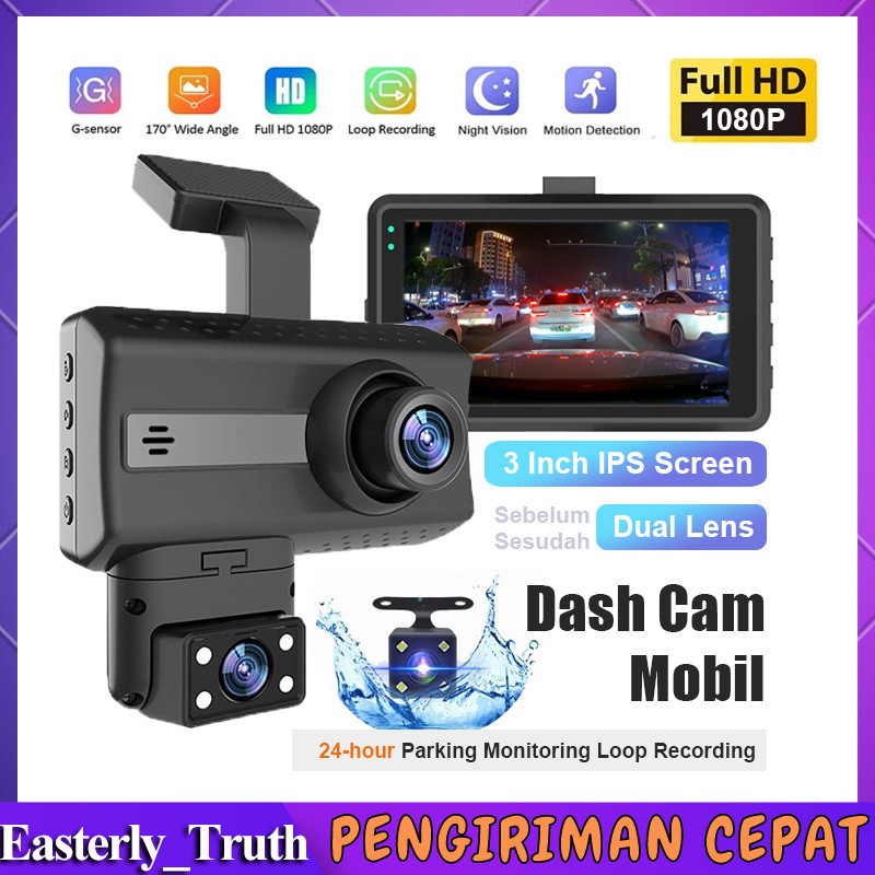 3 lensa Dashcam 1080P Full HD Night Vision G-Sensor 24 Hours Parking Monitor Camera Kamera Mobil Dash Cam