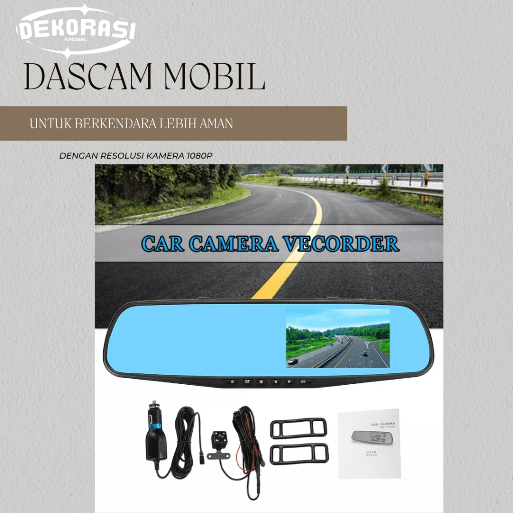 DASCAM MOBIL 4.3 INCHI IPS LAYAR 1080P FULL HD DEPAN BELAKANG DVR DUAL CAMERA DEPAN BELAKANG TANPA MEMORY CARD