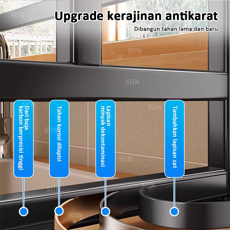 SUN Rak Piring Wastafel Dapur Stainless Steel Multi-fungsi Dengan Penutup
