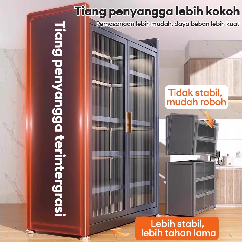 Lemari Dapur Rak Dapur Serbaguna Lemari Piring Estetik Rak Piring Susun Rak piring Tertutup Rak Oven Microwave