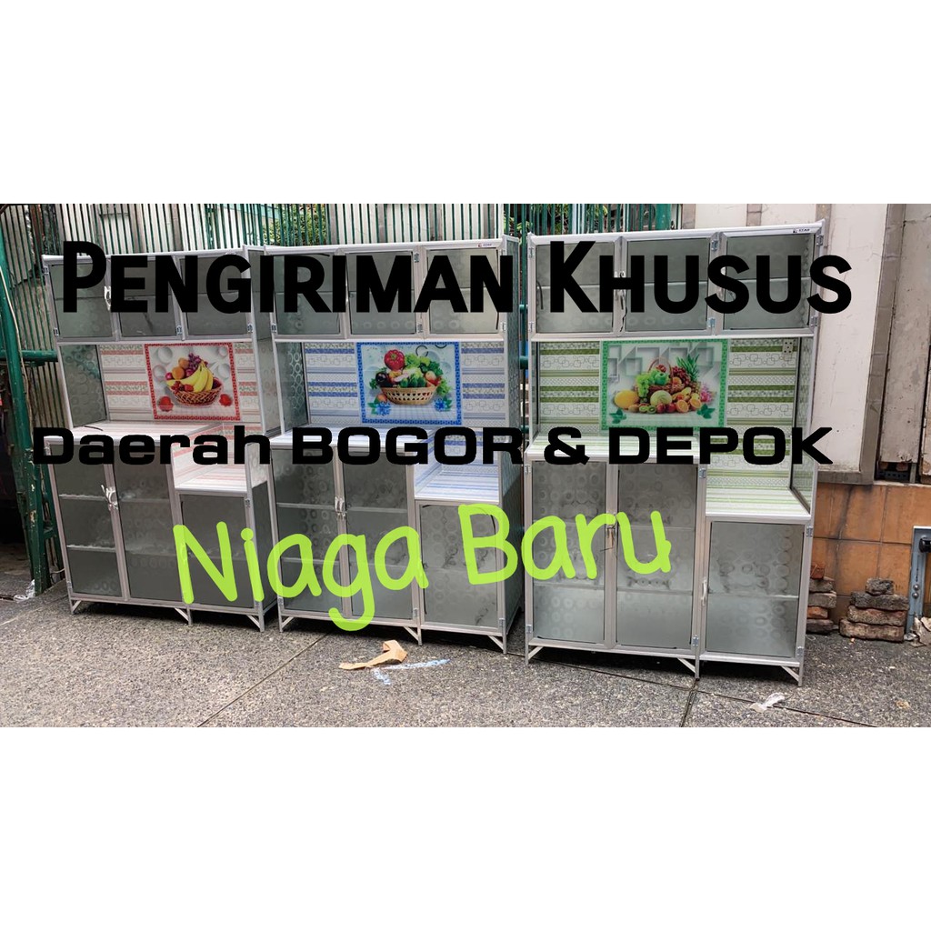 Rak piring / Lemari Piring Kaca Keramik 3 Pintu Magic Buah Seng Keramik KHUSUS BOGOR KURIR TOKO