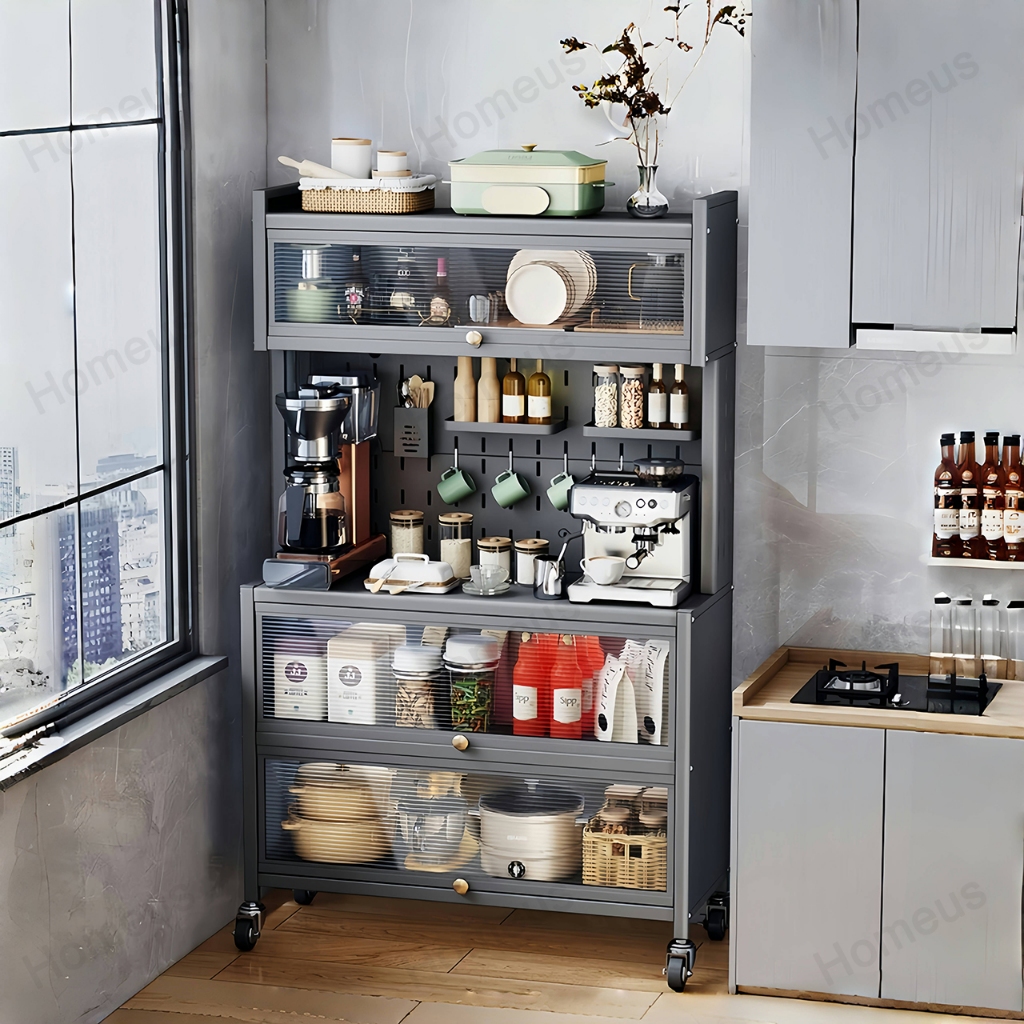 (Sudah Siap) Homeus Lemari Dapur Minimalis Rak Dapur Serbaguna Rak Piring Oven Microwave Rak Penyimpanan Dapur