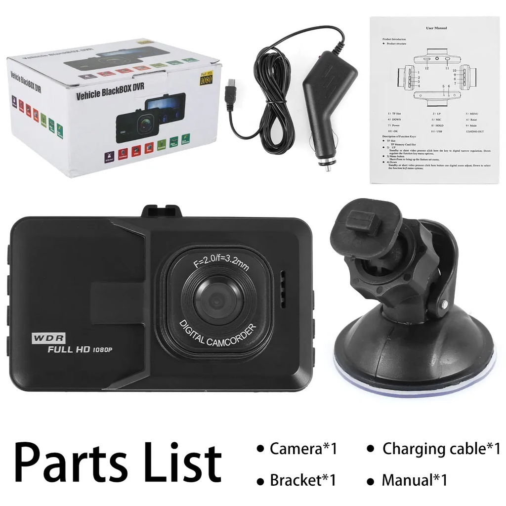 3Inch Dash Cam Front Screen G-sensor 1080P Dan DVR Video Recorder Auto Night Vision Loop Night Vision Dashcam Mobil