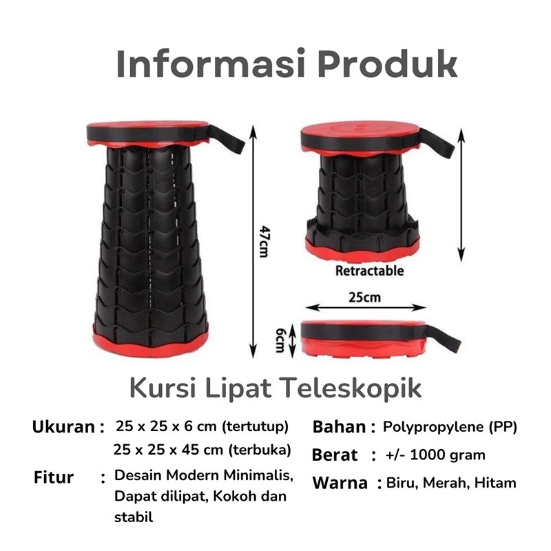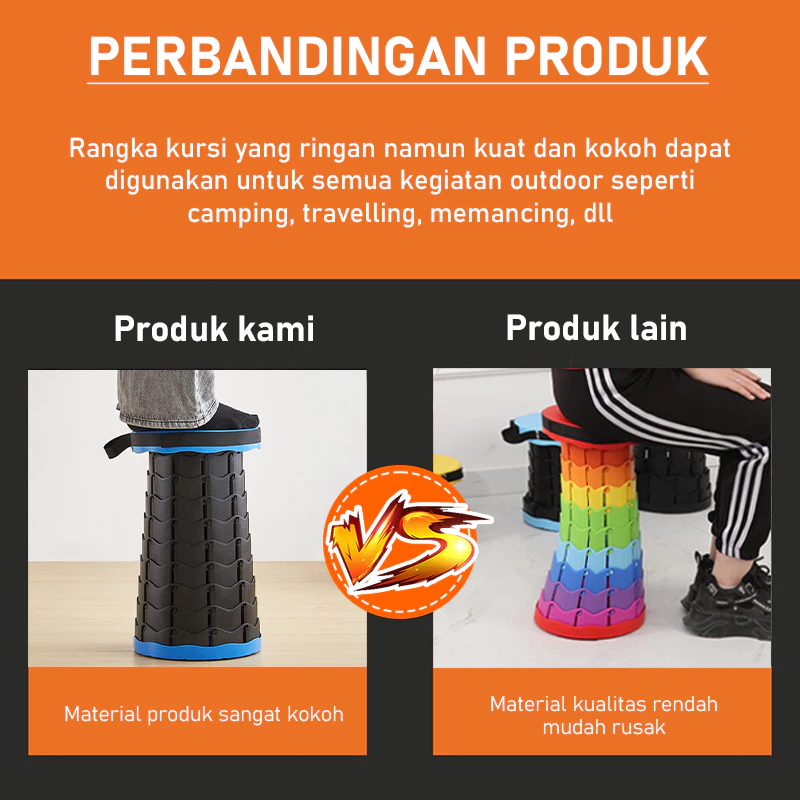 Okasumi Kursi Lipat Teleskopik Portable Bangku Outdoor Multifungsi Kuat Kokoh &Stabil Bangku Tempat Duduk Pancing Campin