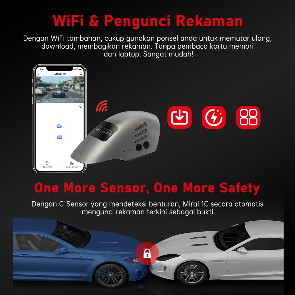 Cargoos Mirai E Dashcam 2K 1440P WiFi Kamera Mobil Sudut Lebar 140° G-Sensor