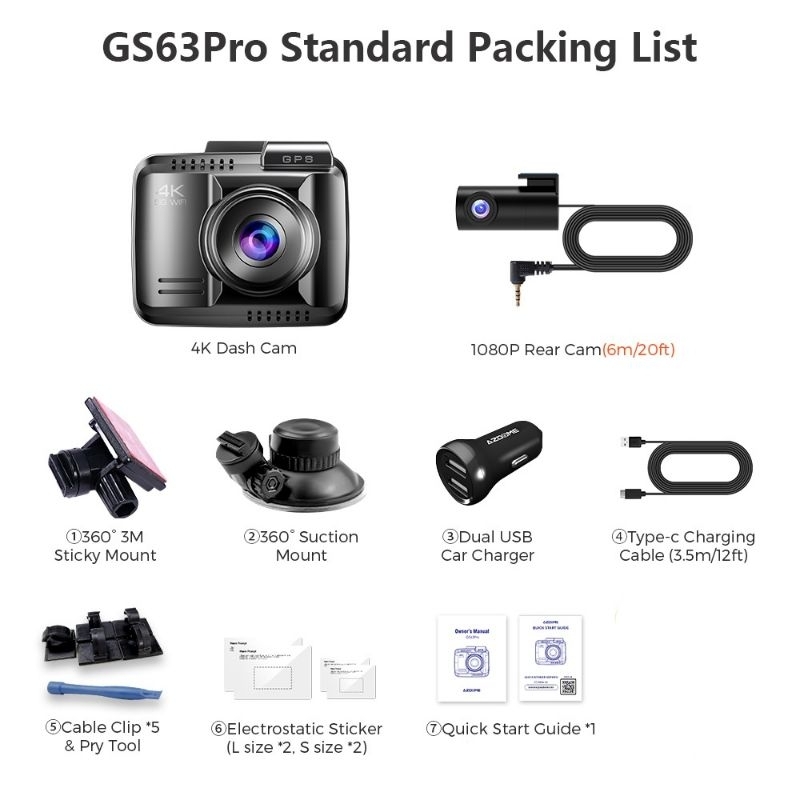 Azdome Gs63PRO 4K Dual Camera Dashcam Dash Cam GS63 Pro Dash Cam Car Camera