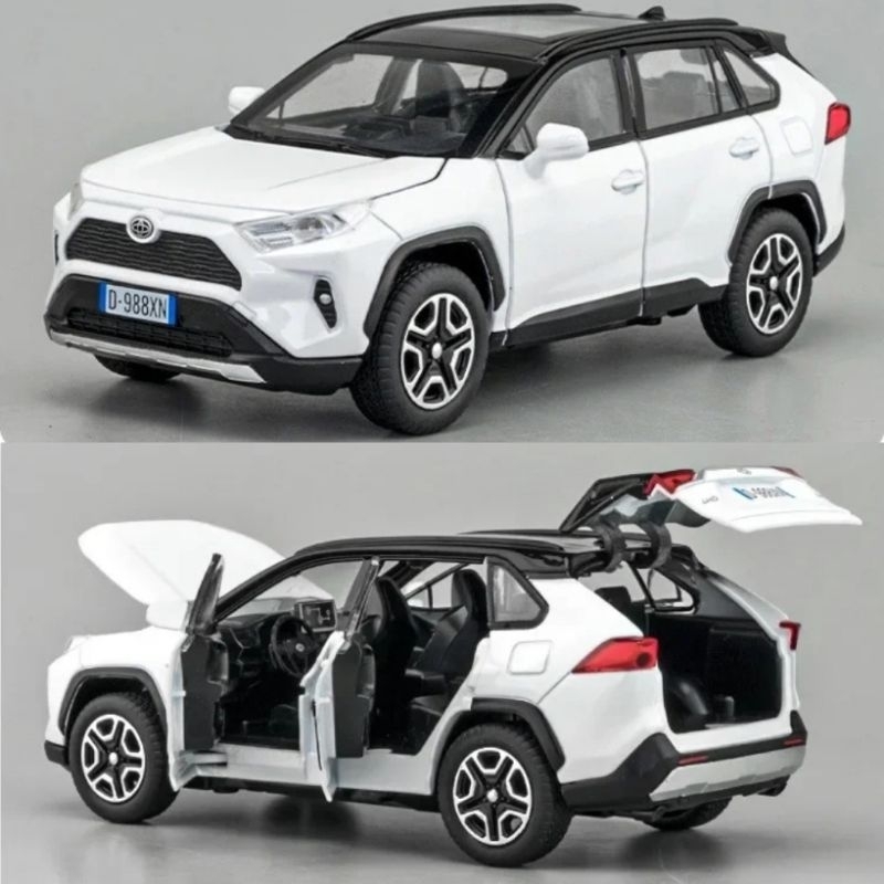 Diecast Mobil Toyota RAV4 SUV Skala 1:32 Miniatur Die-cast Mobil Mobilan Suara Dan Lampu