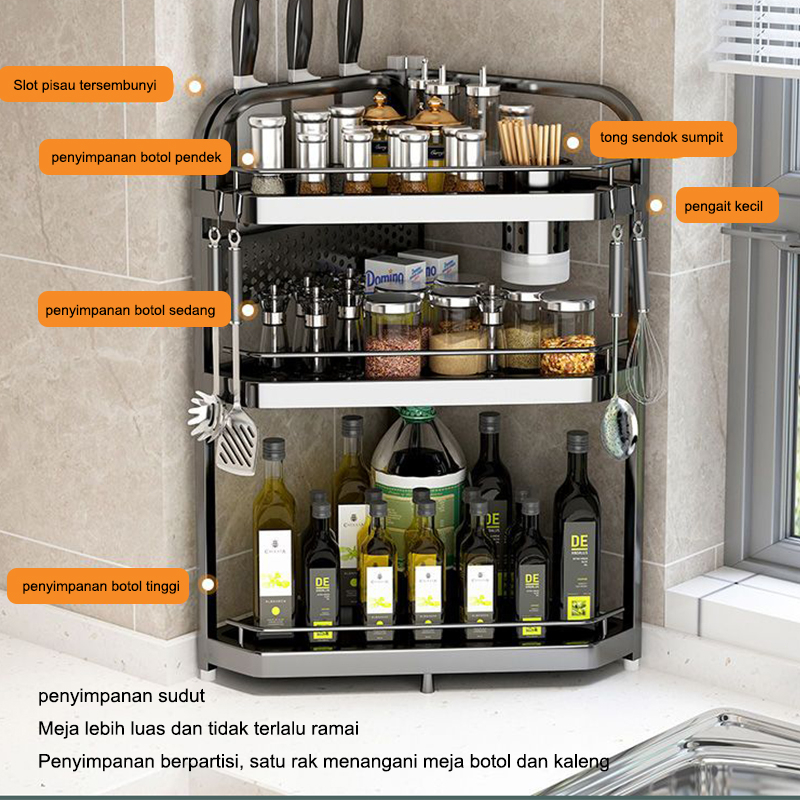 Rak Botol Bumbu Rak Bumbu Dapur Stainless Steel Rak Bumbu Serbaguna 3 Susun Rak Penyimpanan Dapur
