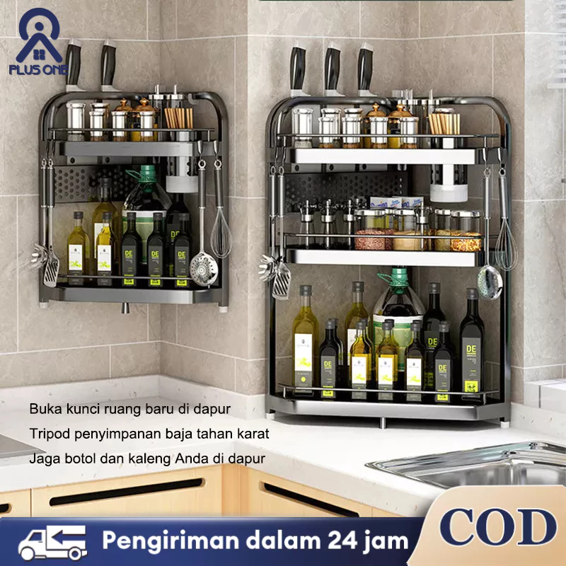 Rak Botol Bumbu Rak Bumbu Dapur Stainless Steel Rak Bumbu Serbaguna 3 Susun Rak Penyimpanan Dapur