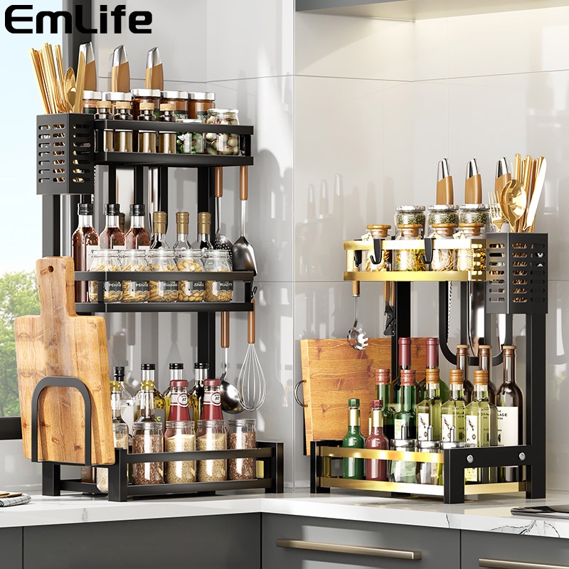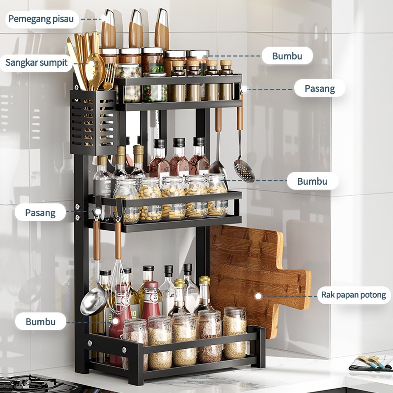Rak Bumbu Dapur Meja Dapur Multifungsi Rak 2-3tingkat Opsional Dengan Aksesoris