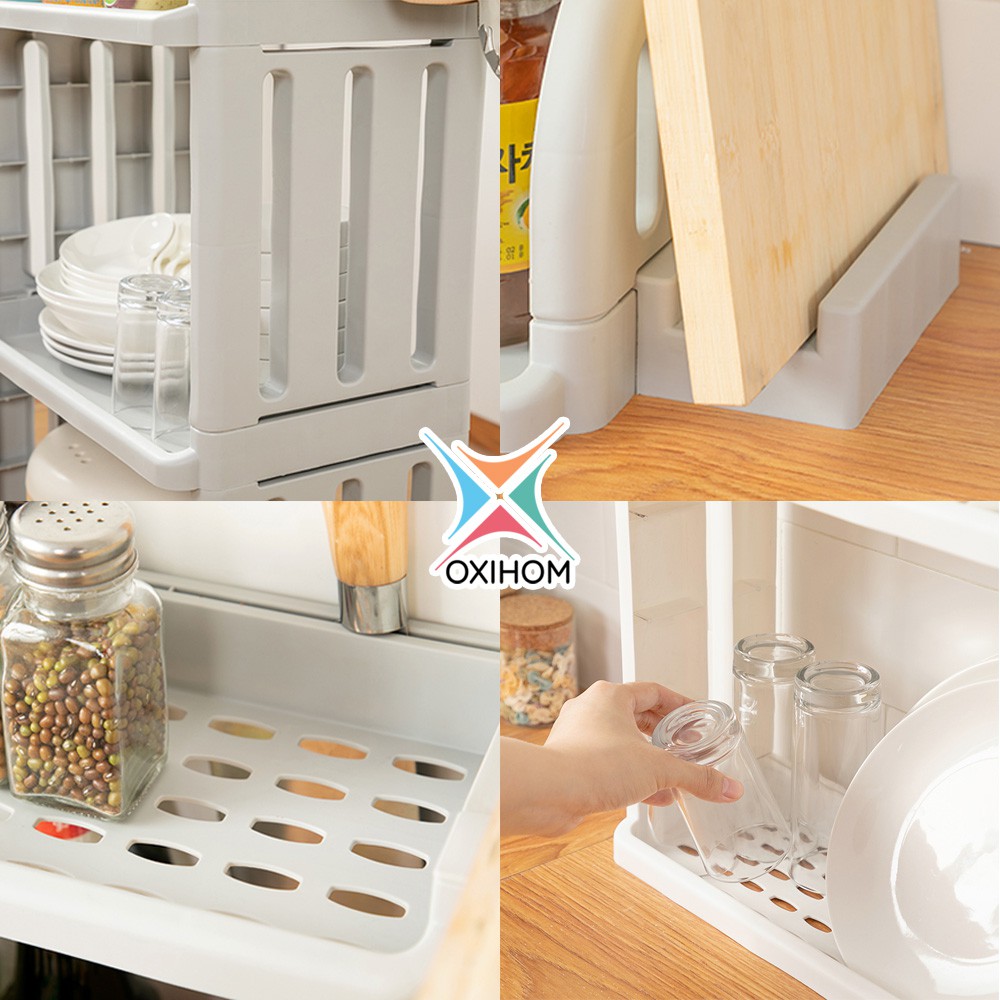 Oxihom Rak Dapur Susun Plastik Tempat Penyimpanan perlengkapan rumah