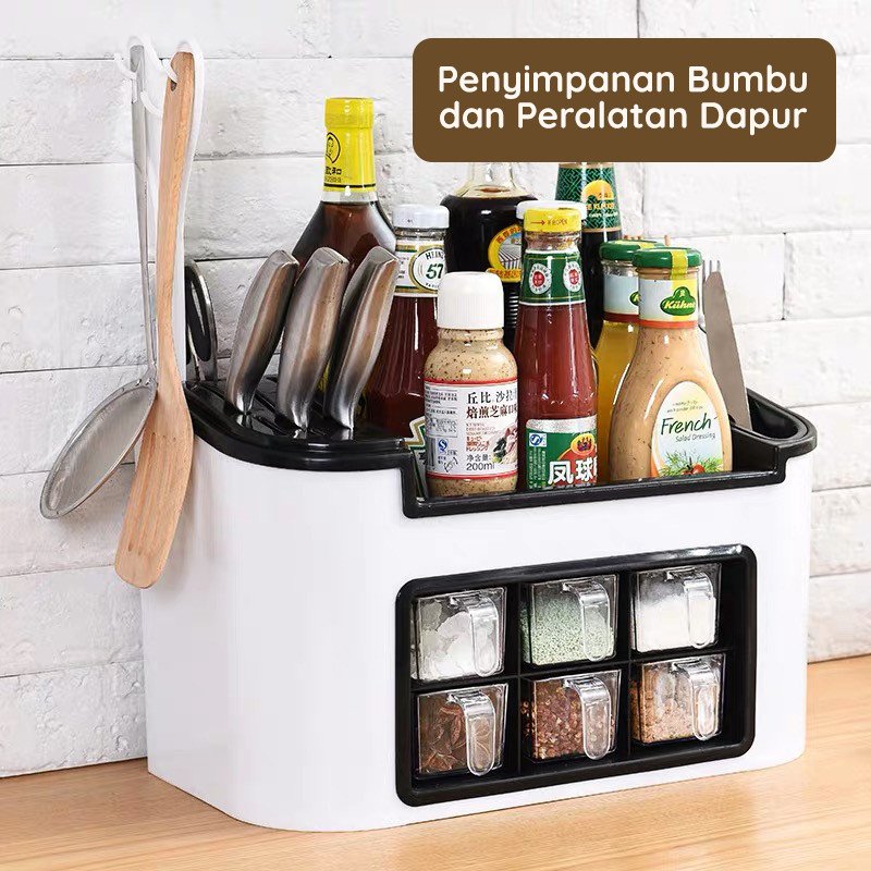 Muzy Rak Bumbu Dapur Multifungsi Dengan 6 Laci Tempat penyimpanan Bumbu Dapur Alat Masak Kitchen HAT101
