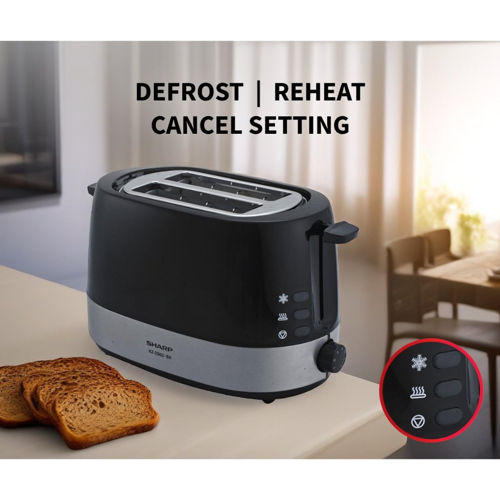 Sharp Pemanggang Roti KZ-2S02 2 Slot 450W, mesin pemanggang roti