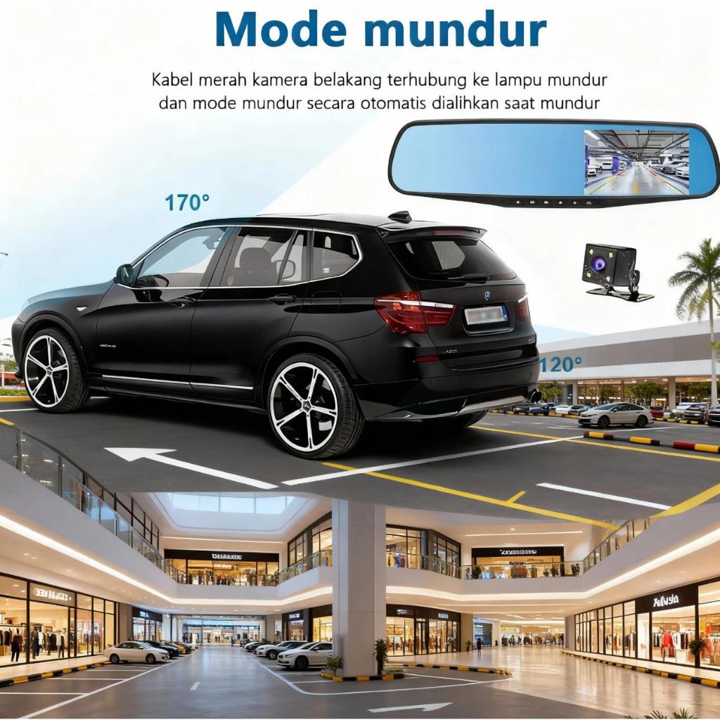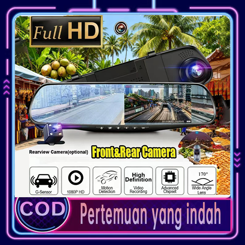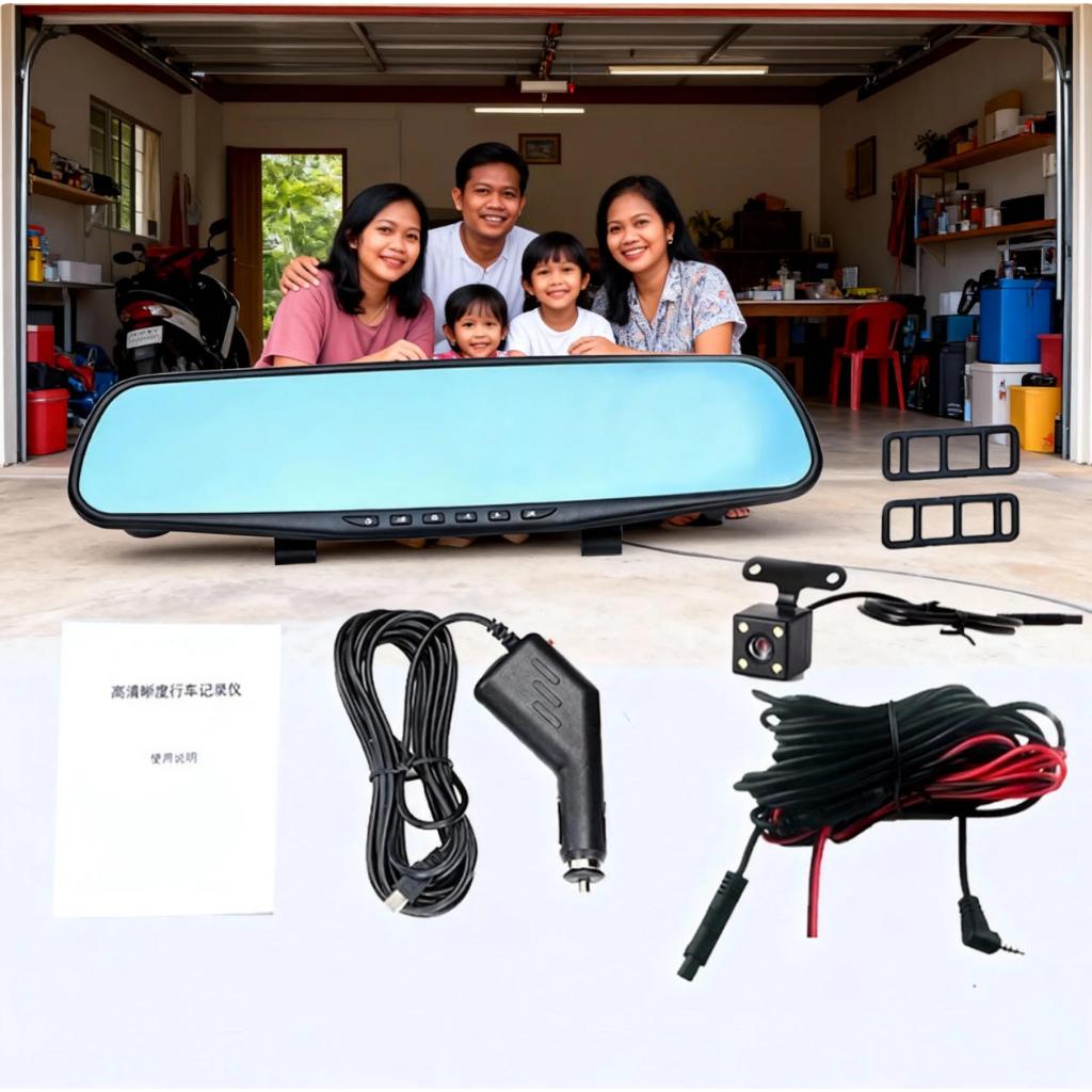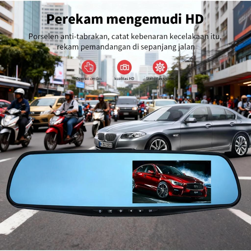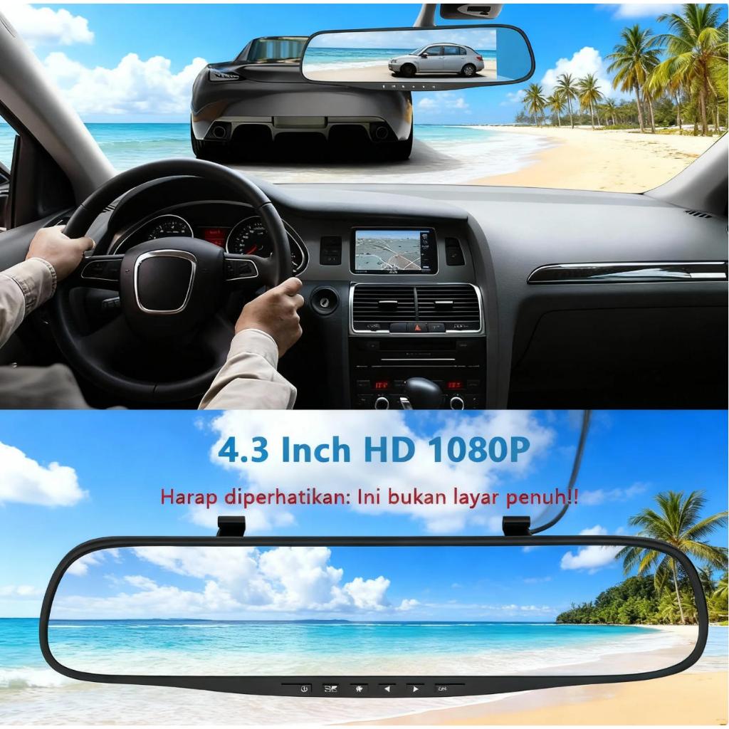 Kaca spion dan dashcam asli baru, pemantauan mobil lensa ganda 4,3 inci, perekaman ganda depan dan belakang 1080P./Dashcam Mobil Cameras 1080P HD 4.3 Inch Night Vision Loop Recording