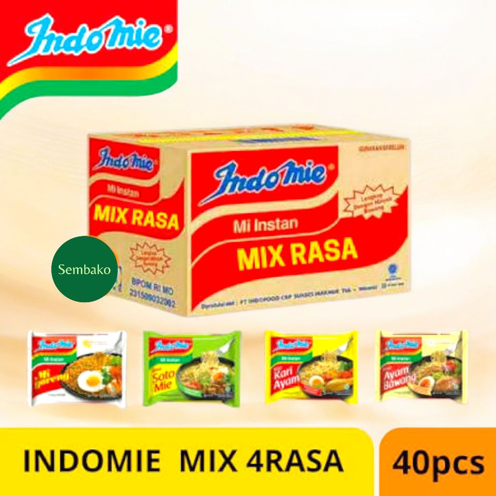 Indomie mix Goreng/Soto/Ayam Bawang/Kari – 1 Dus Isi 40 Bungkus Campur 4 Rasa