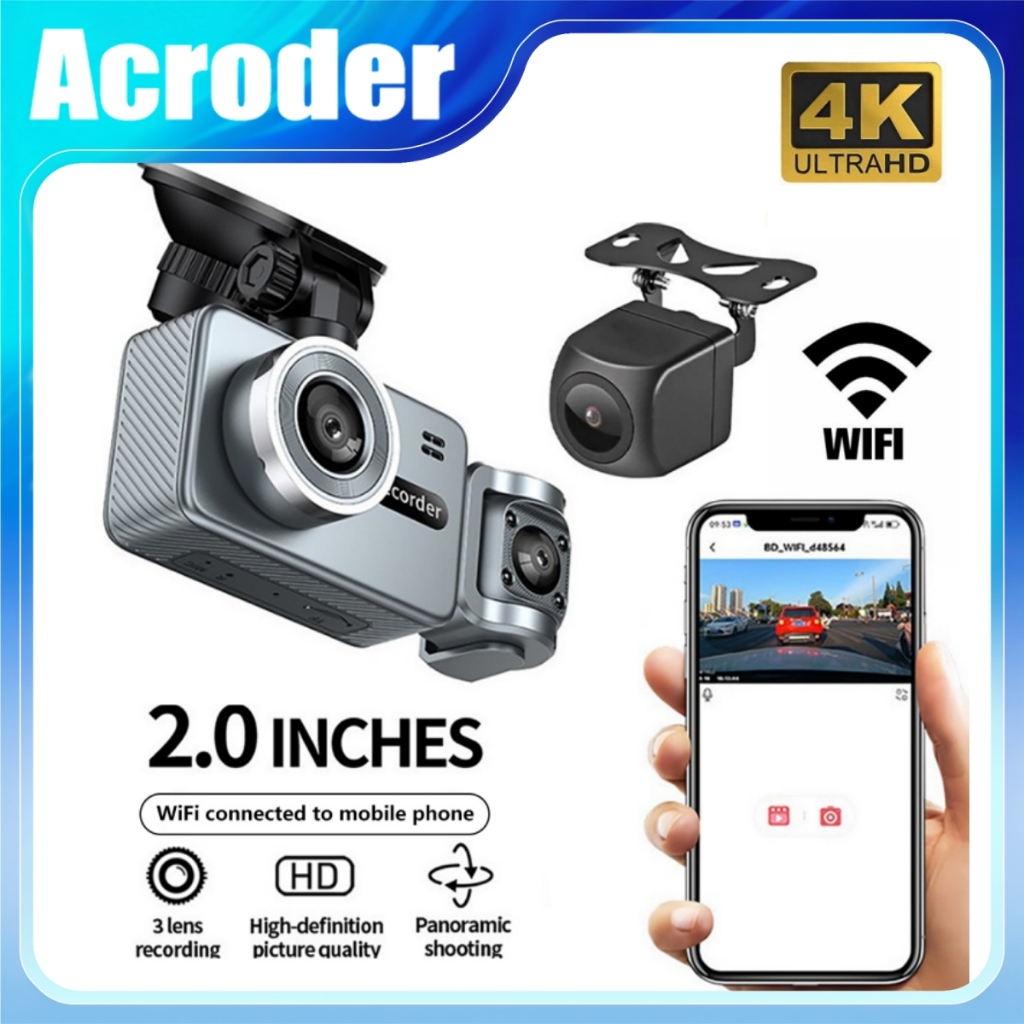 Acroder Dashcam Q2 4K UHD 3 Lens WiFi Pengawasan Parkir 24 Jam Dashcam Mobil