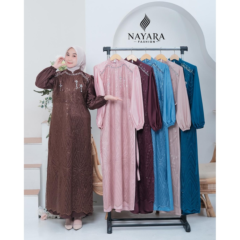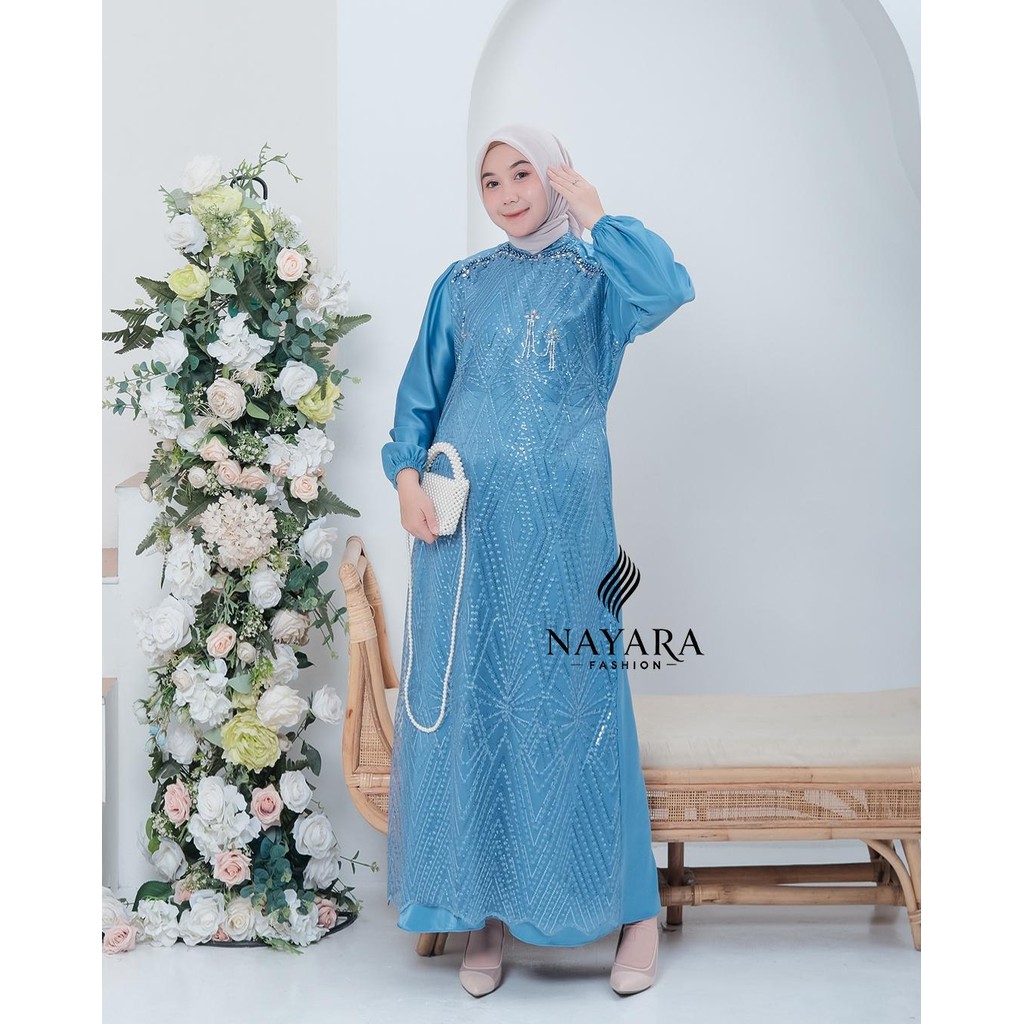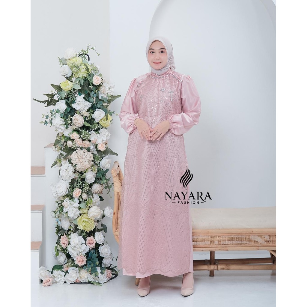 DAVINA DRESS BY NAYARA HIJAB FASHION - GAMIS SATIN VELVET MIX BRUKAT SPANGLE APLIKASI ET MUTIARA CANTIK GAMIS PESTA KONDANGAN TERBARU WANITA 4ppi LEBARAN 2026
