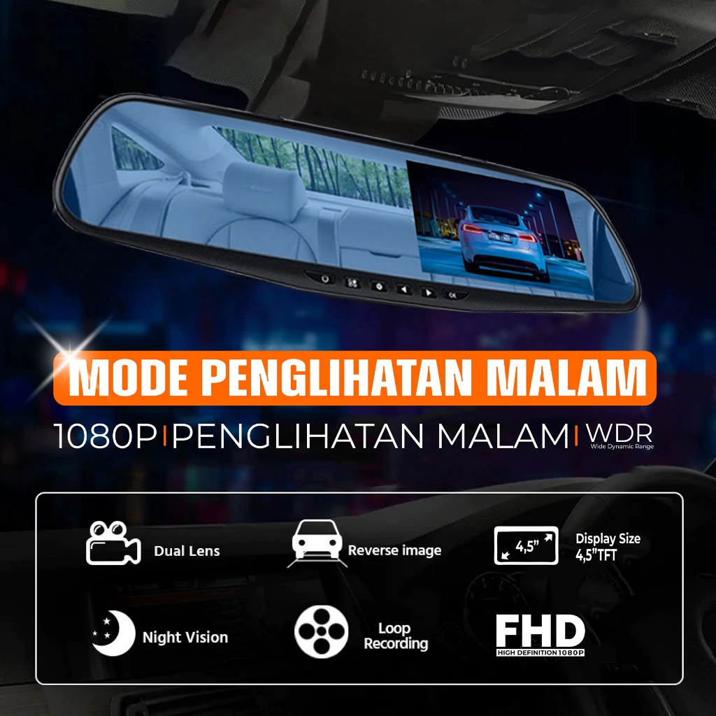 Dash Cam Car DVR Camera 4.3 Inch Resolusi Touch Screen Rearview Mirror Full HD 1080P Night Vision Stream Media Dual Lens Car Camera Spion 170° Wide Loop Recording