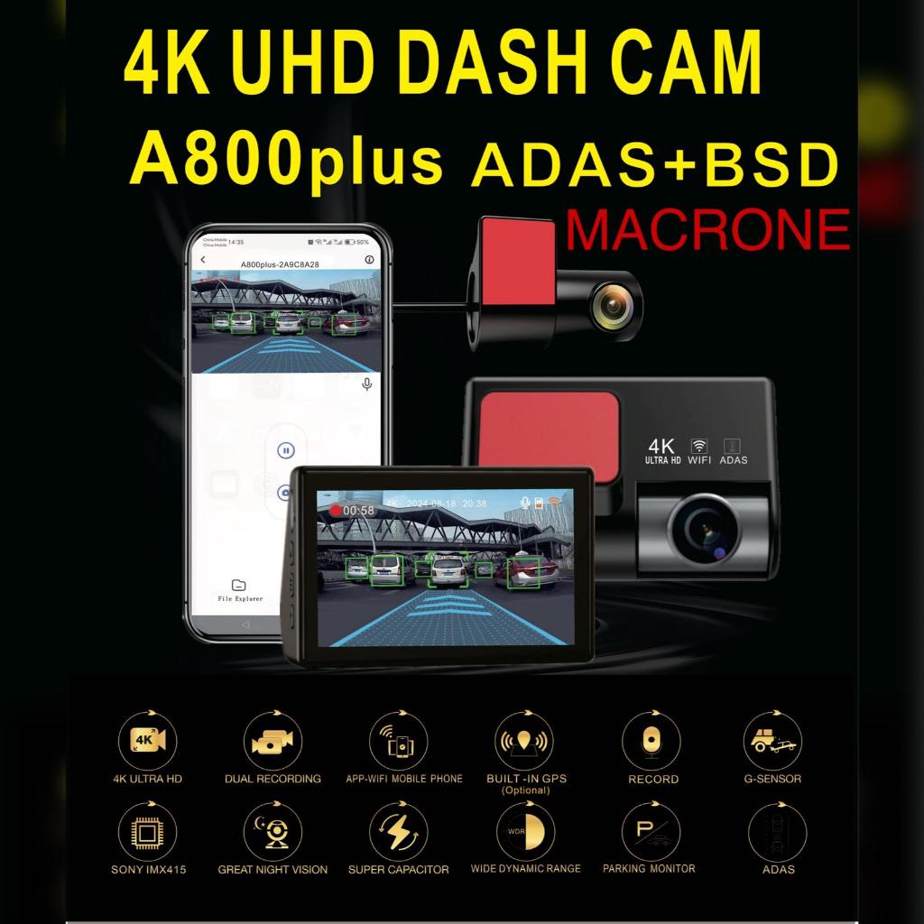 DASHCAM MACRONE CAMERA 4K A800 PRO PLUS DENGAN FITUR AI,PENGENALAN PLAT NOMOR,ADAS,DAN GPS BUILT IN