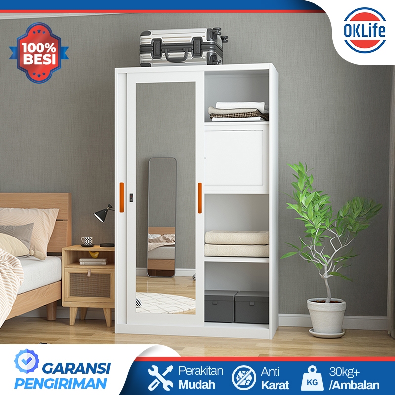 [Star] Lemari Besi Sliding 2 Pintu Lemari Besi Pakaian Lemari Baju susun Minimalis Full Motif Bergaransi Tanpa Dp Offici