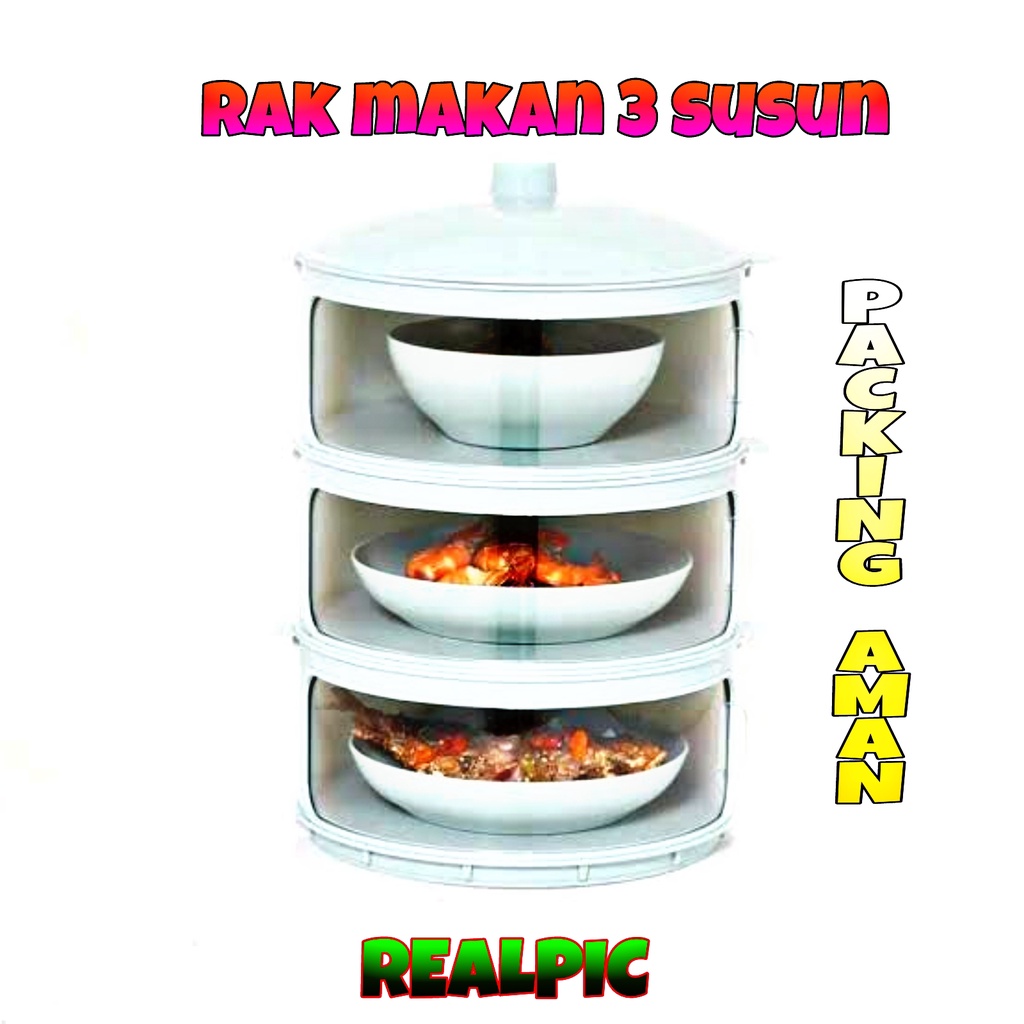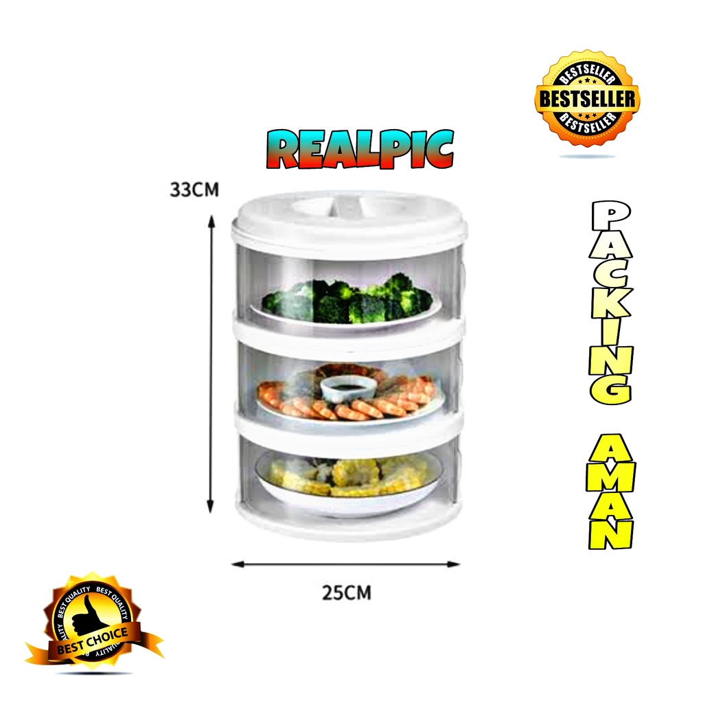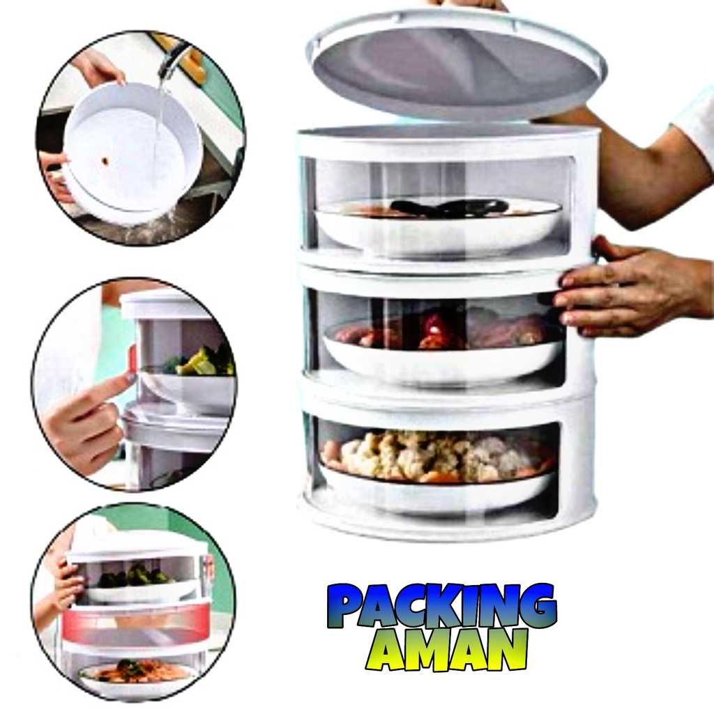 ( ) PROMO Rak Makanan 3 Susun / Tudung Saji 3 Susun / Food Cover / Penutup Makanan 3 Susun / Tutup Makanan / Penutup Makanan Insulasi Tahan Panas