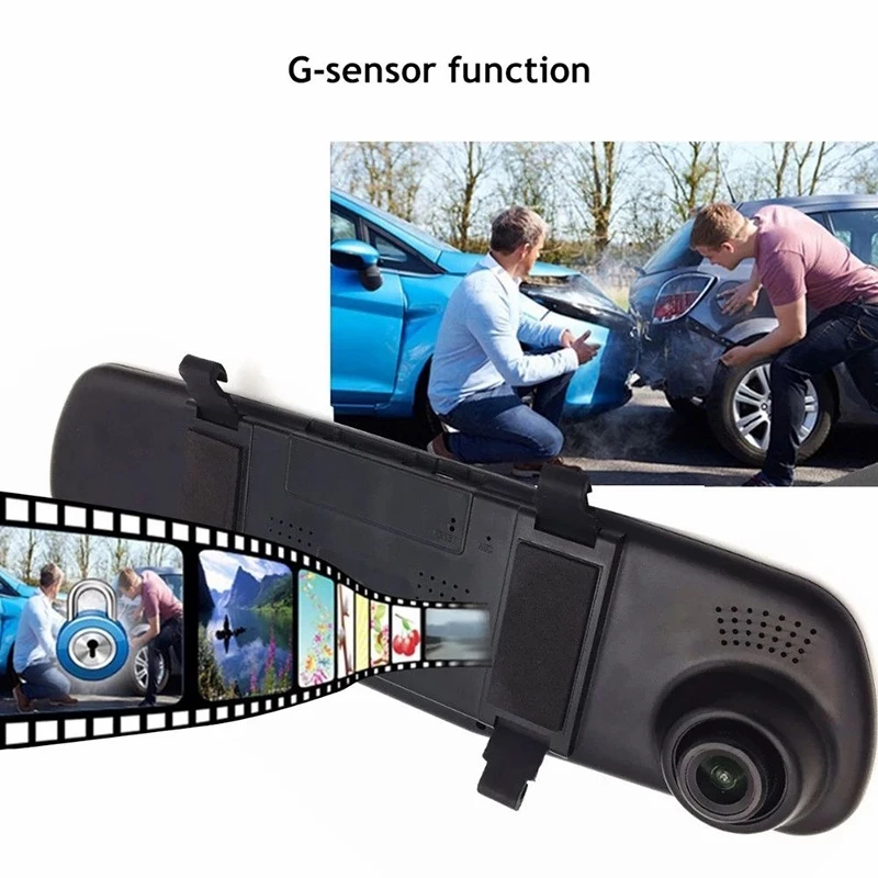 Dash Cam Car DVR Camera 4.3/4.5 Inch Resolusi Touch Screen Rearview Mirror Full HD 1080P Night Vision Stream Media Dual Lens Car Camera Spion 170° Wide Loop Recording