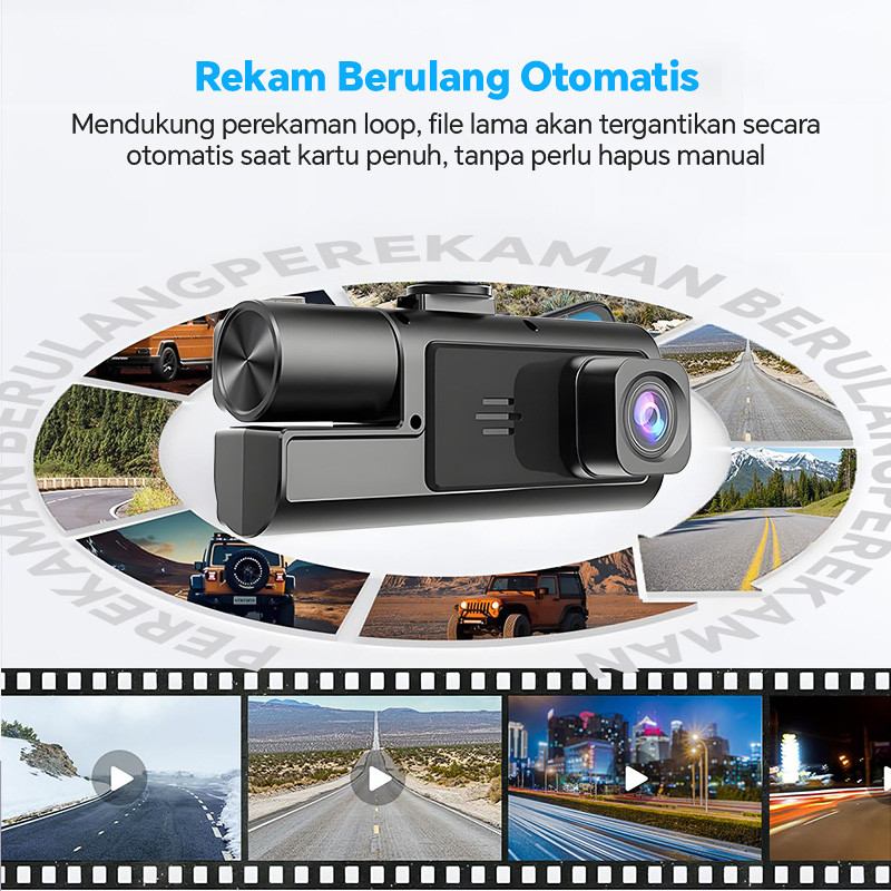 Perekam Dashcam Mobil Car Full HD 1080P 3 Kamera Lens 170° Sudut Lebar Night Vision G-Sensor Pemantauan Parkir 24 Jam Dash Cam dengan 2 inch Layar Loop Recording