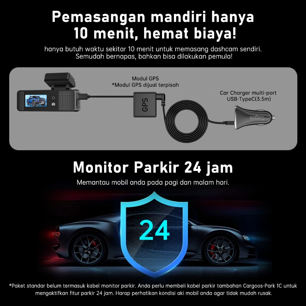 Cargoos O1 Dash Cam Mobil 2K 1440p GPS Wifi G-sensor Night Vision Kontrol Aplikasi Car Dashcam